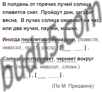 В полдень от горячих лучей солнца плавится снег. Пройдут дни загудит весна. В лучах солнца оживают на час или два жучки паучки мошки. Иногда перелетают комарики. Солнце распаривает чернеет вокруг снег.