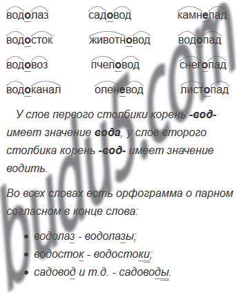 Объясни, что обозначают слова. Одинаковое ли значение у корня -вод- в словах первого и второго столбиков? Почему? Докажи.