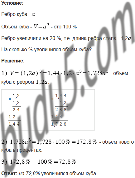 На сколько процентов увеличится объём куба, если длину его каждого ребра увеличить на 20%?