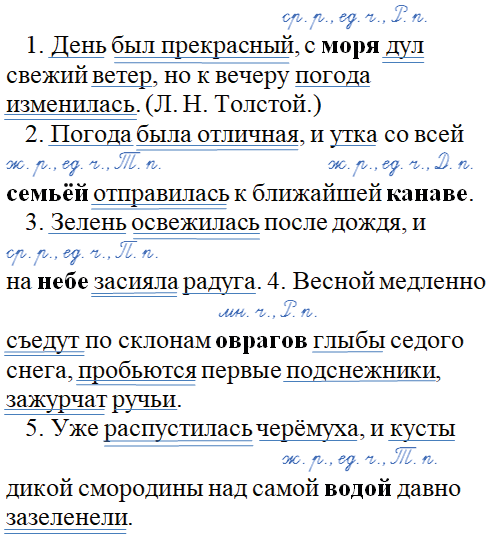 1. День был прекрасный с моря дул свежий ветер но к вечеру погода изменилась. (Л. Н. Толстой.)