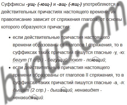 Вспомните, в какой особой форме глагола употребляются суффиксы -ущ- (-ющ-) и -ащ- (-ящ-).