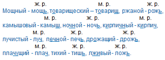 • Подберите к каждому слову однокоренное имя существительное в единственном числе с шипящим звуком на конце слова.