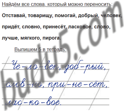 Найди в тексте упражнения 3 пять слов, которые можно переносить. Запиши их, разделяя для переноса.