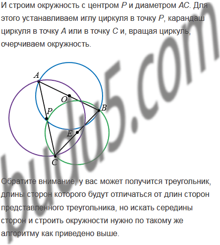 Начертите произвольный треугольник. Проведите три окружности так, чтобы стороны треугольника были их диаметрами.