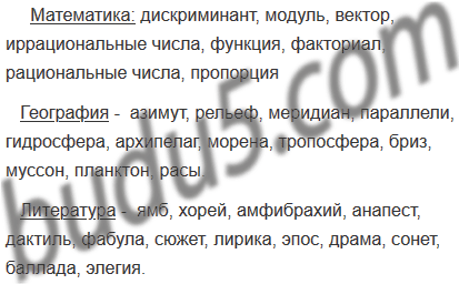 Выпишите примеры терминов из учебников по математике, географии, литературе. Объясните их значение.