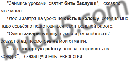 Придумайте и запишите предложения, включив в них фразеологизмы бить баклуши, сесть в калошу, заварить кашу, топорная работа.