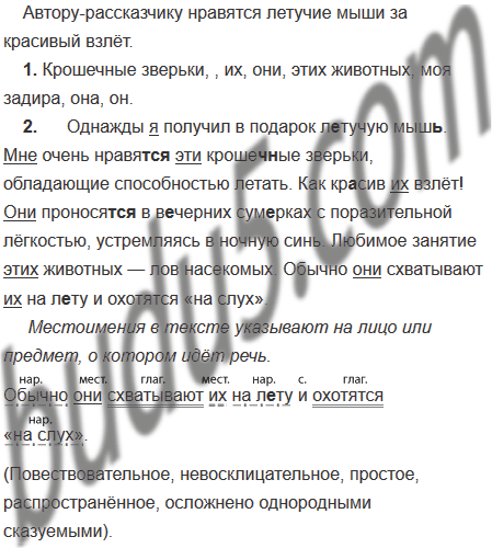 Однажды я получил в подарок л..тучую мыш(?). Мне очень нравят(?)ся эти крошеч(?)ные зверьки, обладающие способностью летать. Как кр..сив их взлёт! Они проносят(?)ся в в..черних сум..рках с поразительной лёгкостью, устремляясь в ночную синь. Любимое занятие этих животных — лов насекомых. Обычно они схватывают их на л..ту и охотятся «на слух».4