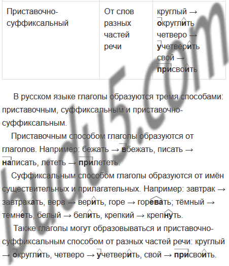 | От слов разных частей речи | круглый → округлить четверо → учетверить свой → присвоить | |