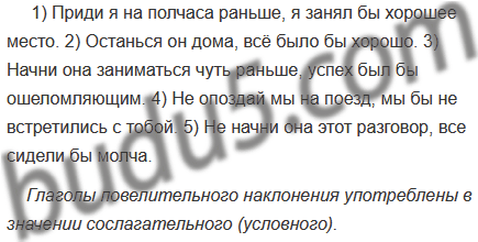 1) Приди я на полчаса раньше, ... 2) Останься он дома, ... 3) Начни она заниматься чуть раньше, ... 4) Не опоздай мы на поезд, ... 5) Не начни она этот разговор, ...