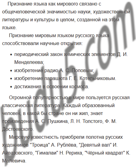 Признание языка как мирового связано с общечеловеческой значимостью науки, художественной литературы и культуры в целом, созданной на этом языке. Расскажите об известных вам научных открытиях, произведениях художественной литературы, изобразительного искусства и т. п., которые, по вашему мнению, способствовали утверждению русского языка в качестве мирового.