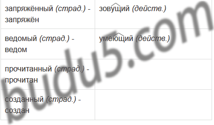 | Причастия имеющие краткую форму | Причастия, не имеющие краткой формы |