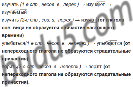 Образуйте страдательные причастия настоящего времени. Запишите словообразовательные цепочки. Выделите в словах суффиксы и окончания, обозначьте спряжение глаголов, их вид и переходность.