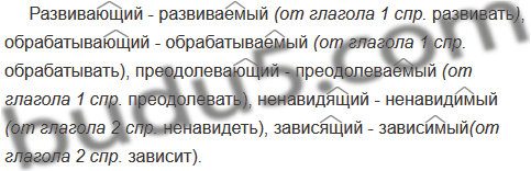 Развивающий, обрабатывающий, преодолевающий, ненавидящий, зависящий.