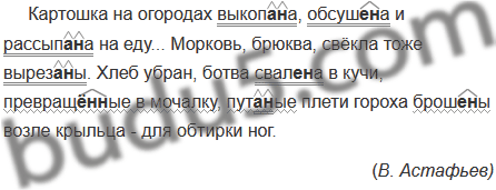 Картошка на огородах выкопа..(н, нн)а, обсуш..(н, нн)а и рассып..(н, нн)а на еду... Морковь. брюква, свёкла тоже вырез..(н, нн)ы. Хлеб убран, ботва свал..(н, нн)а в кучи, превращ..(н, нн)ые в мочалку, пут..(н, нн)ые плети гороха брош..(н, нн)ы аозле крыльца - для обтирки ног.