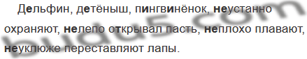 Д..льфин, д..тёныш, п..нгв..нёнок, (не)устанно охраняют, (не)лепо о..крывал пасть, (не)плохо плавают, (не)уклюже переставляют лапы.