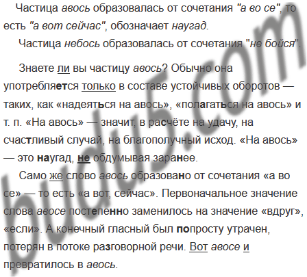 Прочитайте текст. Расскажите о значении и происхождении частиц авось и небось.
