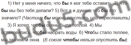 1) Нет у меня ничего, что(бы) я мог тебе оставить. 2) Что(бы) мы без тебя делали? 3) Я хотел, что(бы) осень была тёплой. 4) Мы остановились, что(бы) набрать воды. 5) Вот я и думаю, что(бы) это значило? 6) (Что)бы стало теплее, мы заклеили окна.