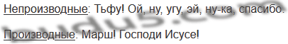Проанализируйте междометия, которые встретились в предложениях предыдущего упражнения. Какие из них являются непроизводными, а какие — производными (возникшими из самостоятельных частей речи)?