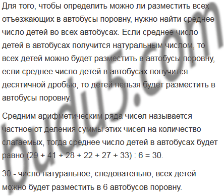 На экскурсию детей отправляли на 6 одинаковых автобусах. В автобусах оказалось 29, 41, 28, 22, 27 и 33 человека. Можно ли было отъезжающих разместить в автобусах поровну?