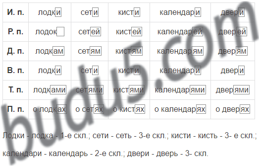 1. Просклоняйте письменно существительные лодки, сети, кисти, календари, двери.
